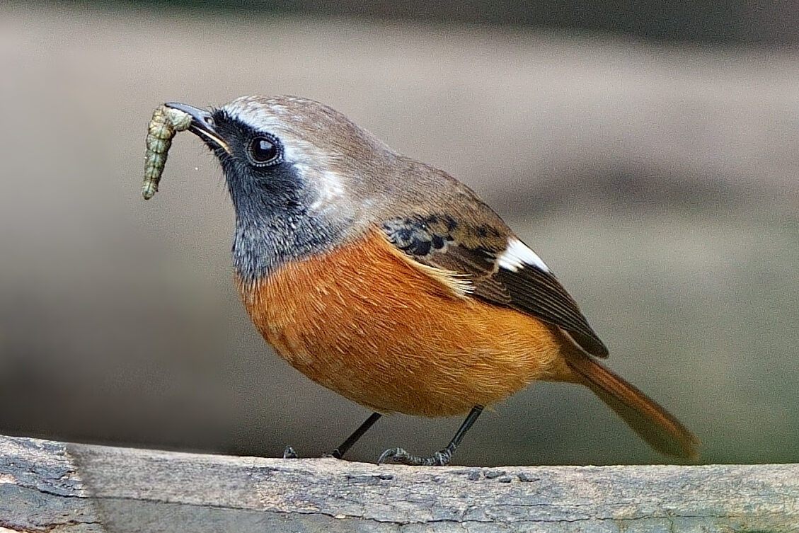 地鳴きを聞くようになってから早1週間。昨日のウォーキング時にジョウビタキ♂を初めて見たため、撮影にチャレンジしました。枯れ枝の上に止まりながら、暫くのあいだ周囲を見渡していましたが、すっといなくなってしまったので探したところ、獲物を見つけてゲットしていました。