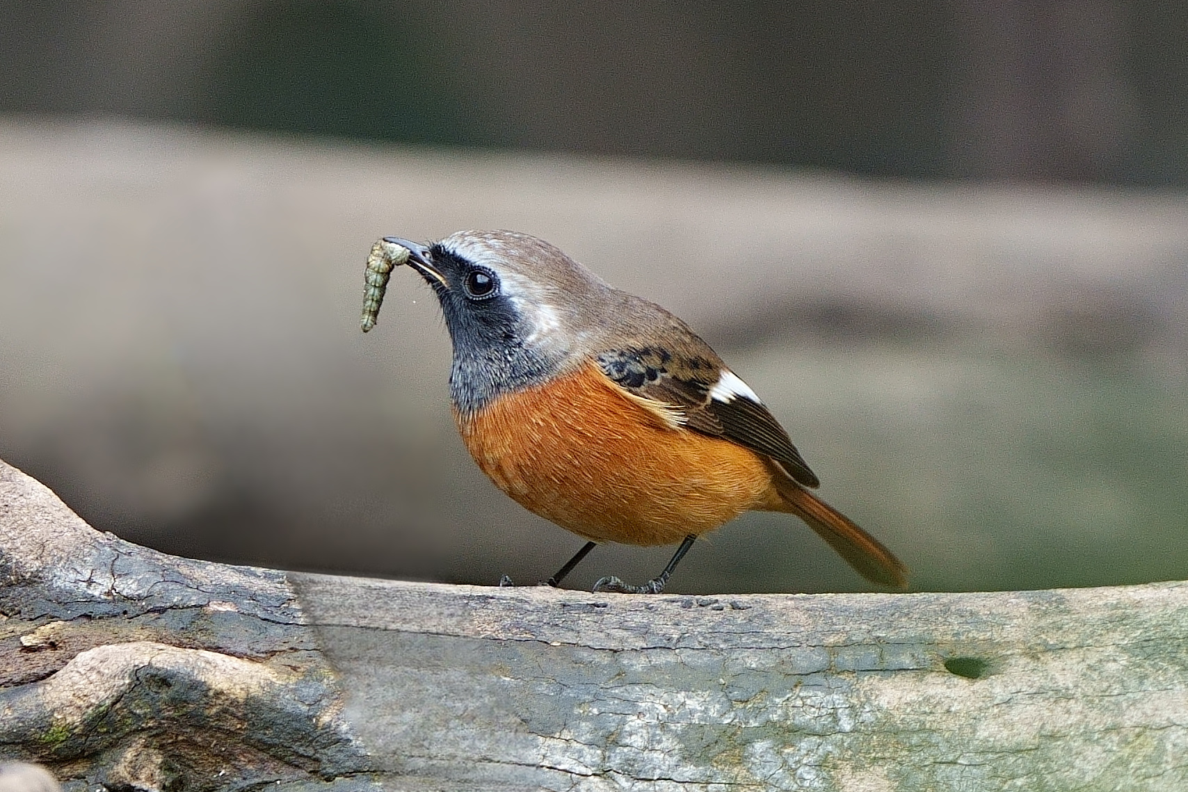 地鳴きを聞くようになってから早1週間。昨日のウォーキング時にジョウビタキ♂を初めて見たため、撮影にチャレンジしました。枯れ枝の上に止まりながら、暫くのあいだ周囲を見渡していましたが、すっといなくなってしまったので探したところ、獲物を見つけてゲットしていました。
