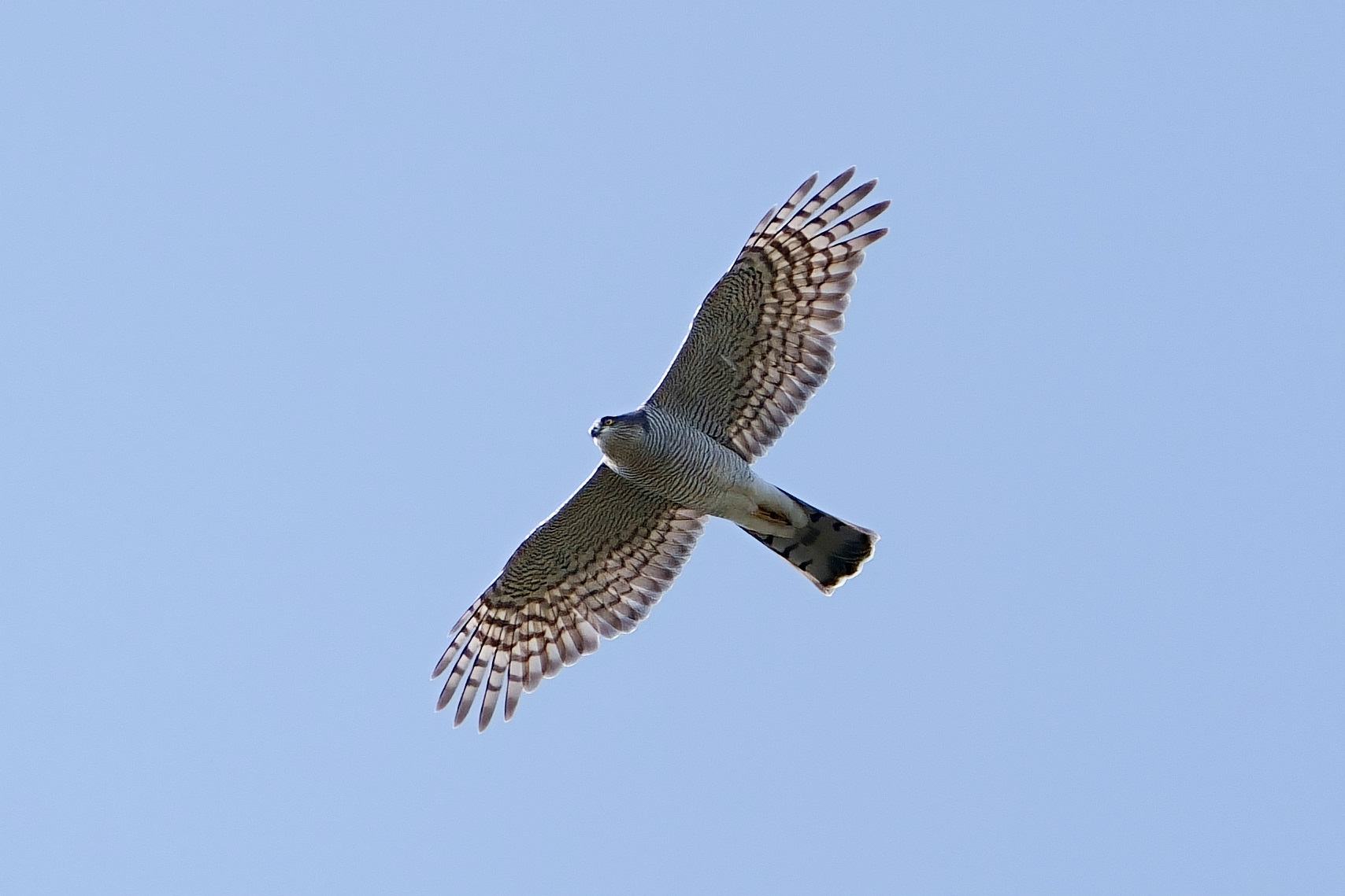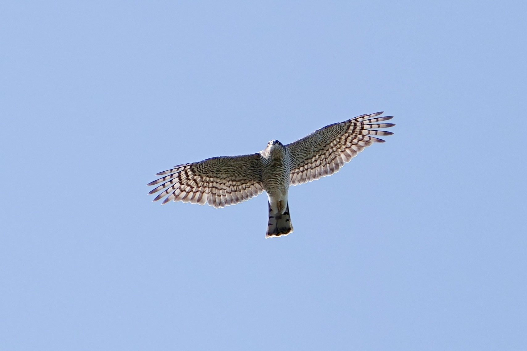 - 風切羽の横斑がはっきりしていて、初列風切羽P5がとんがって見える
