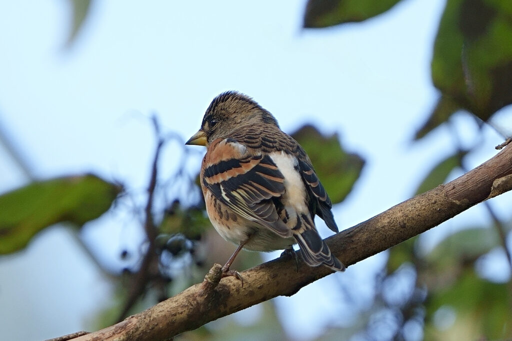 朝のウォーキング時に今季初のジョウビタキの地鳴きを聞いたので、午後に探しに行きました。ところが、すっかり気配もなくなっていて半ば諦めかけていたところ、二つの鳥影を発見。アトリとビンズイでした。