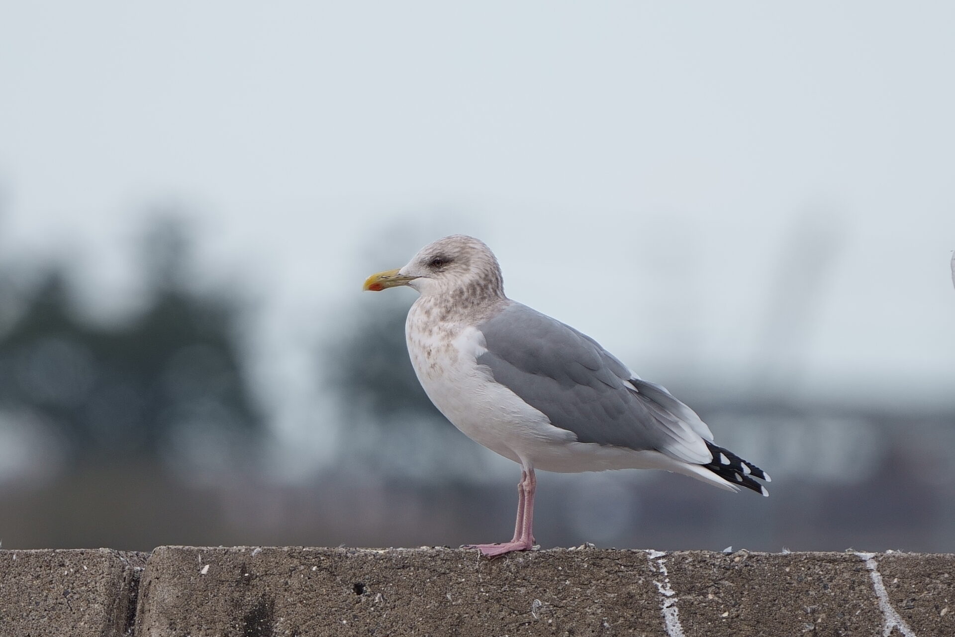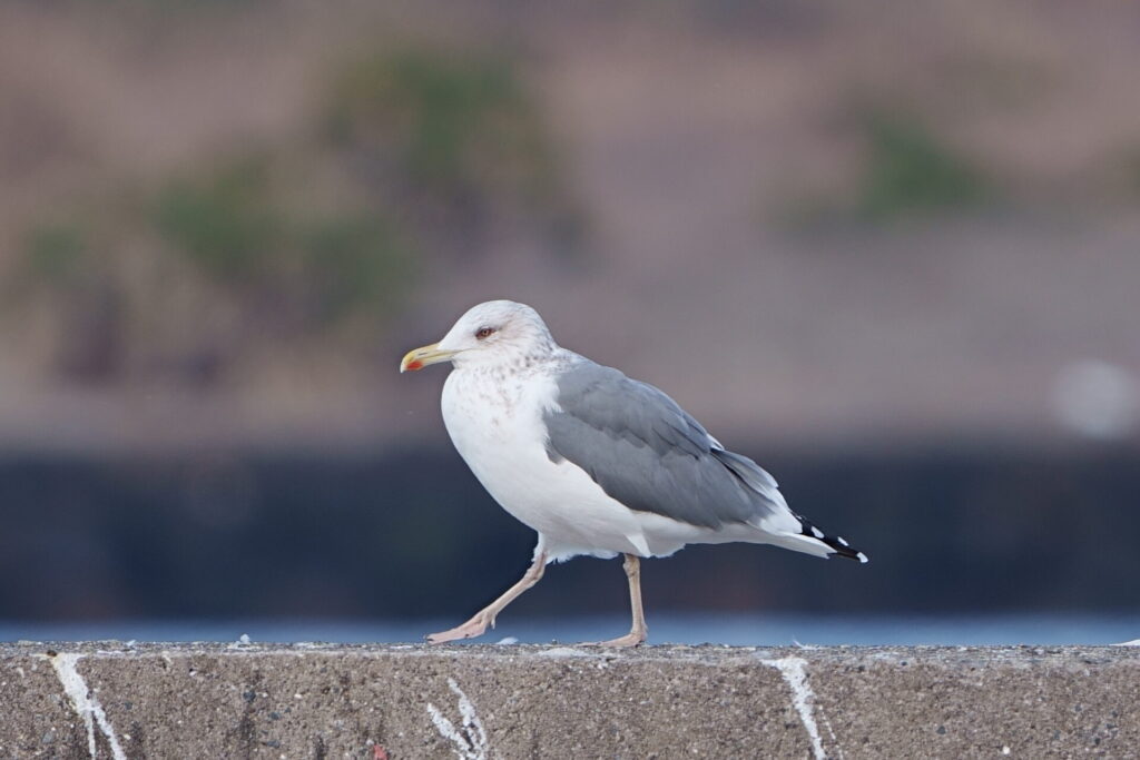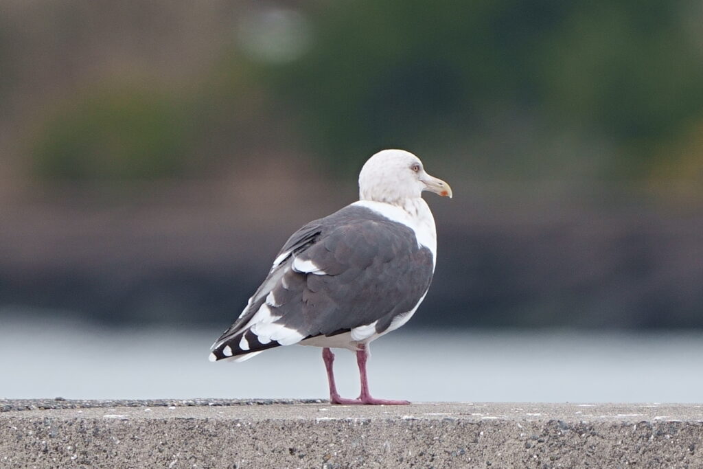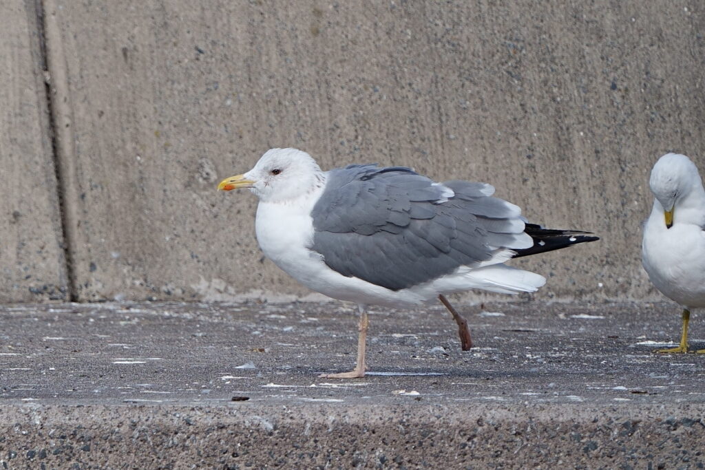 - セグロカモメ。背のグレーと足のピンクが薄い、もっとも代表的な大型カモメ。
