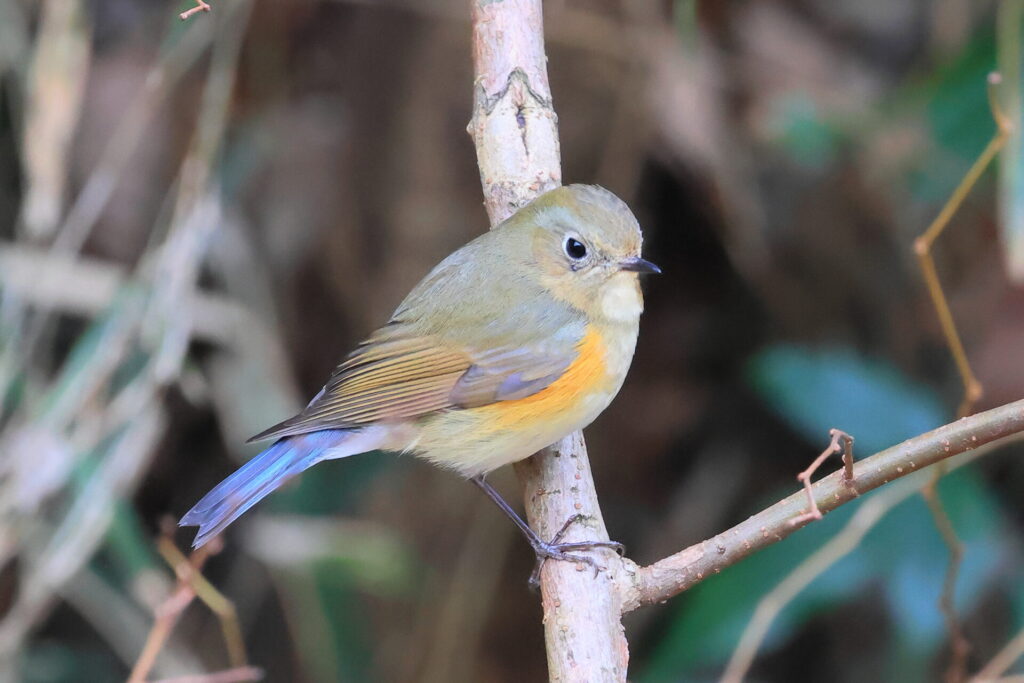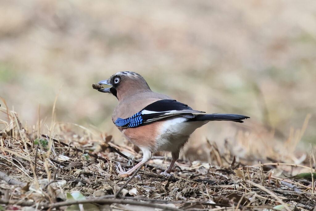 その後、本日は市野谷の森東近隣公園ではなく、森の北側の道に沿って歩いてみると、ルリビタキのメスとカケスに遭遇。あっという間に飛び去ってしまいましたが、なんとか撮れたのがこの2枚です。