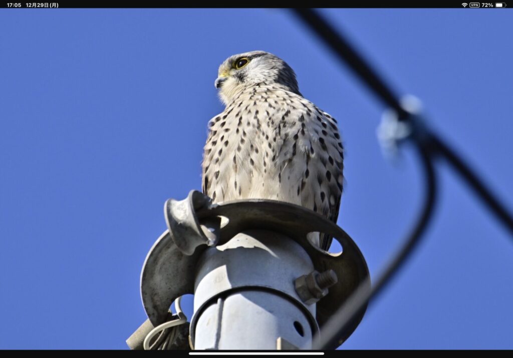 その後、坂川の上流へと移動し、田園地帯で狩をするチョウゲンボウを観察し、更に上流へ移動しながらヒドリガモの集団を探します。そして、たった1羽のアメリカヒドリを見つけます。
