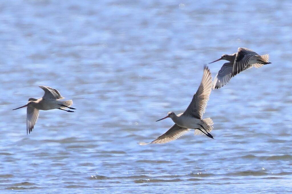 クチバシが人参色なのはミヤコドリ、白黒の姿にオレンジ色が目立ちます。ハマシギはお腹の黒さが薄くなっていました。