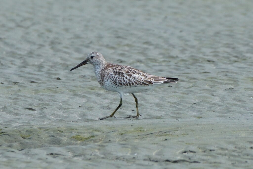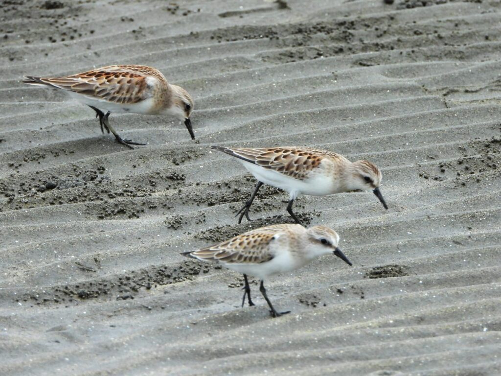 いつもなら身近なダイゼンも遠い波打ち際です。オオソリハシシギの長いクチバシは、同定には大変助かりました。他団体のみなさんに混じり、おかげでちゃっかりとウズラシギも。茶色の帽子をかぶったような姿でハマシギの中に混じっていました。鳥合わせ後、オバシギも確認されましたよ。いまさん、お手柄です。