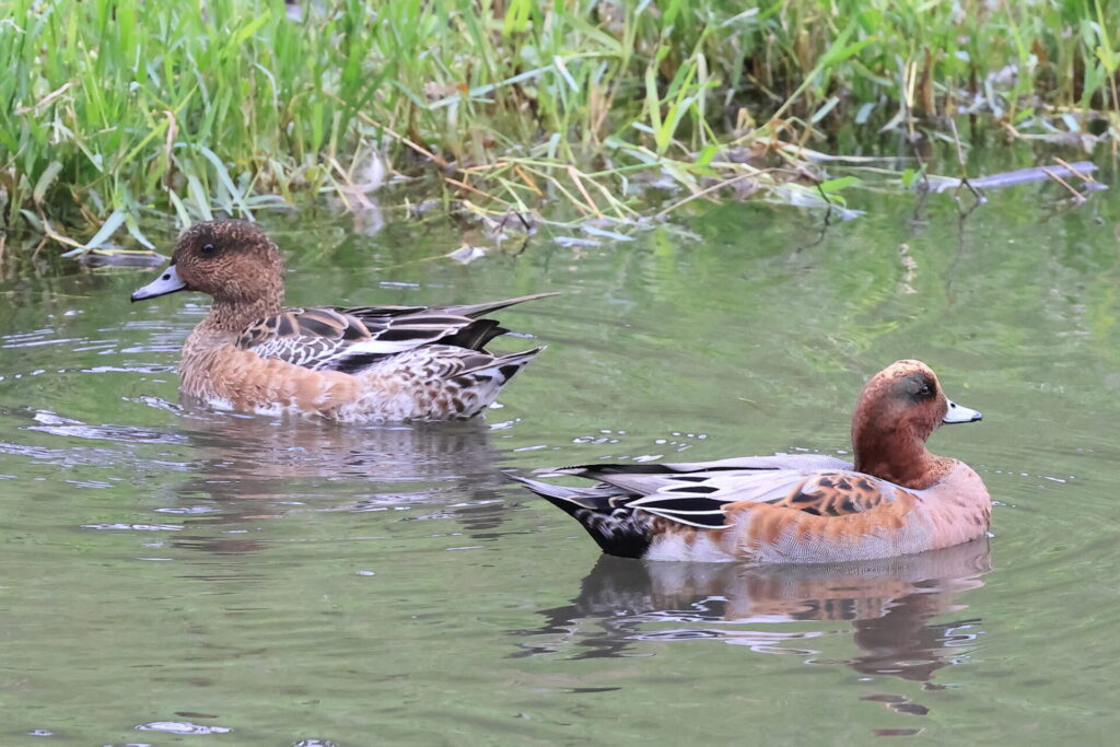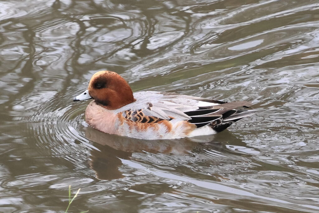 さて水辺公園では、カルガモに混じって8羽ほどのヒドリガモがいました。今秋の先陣を切って帰ってきたカモたちに「お帰りなさい」ですね。