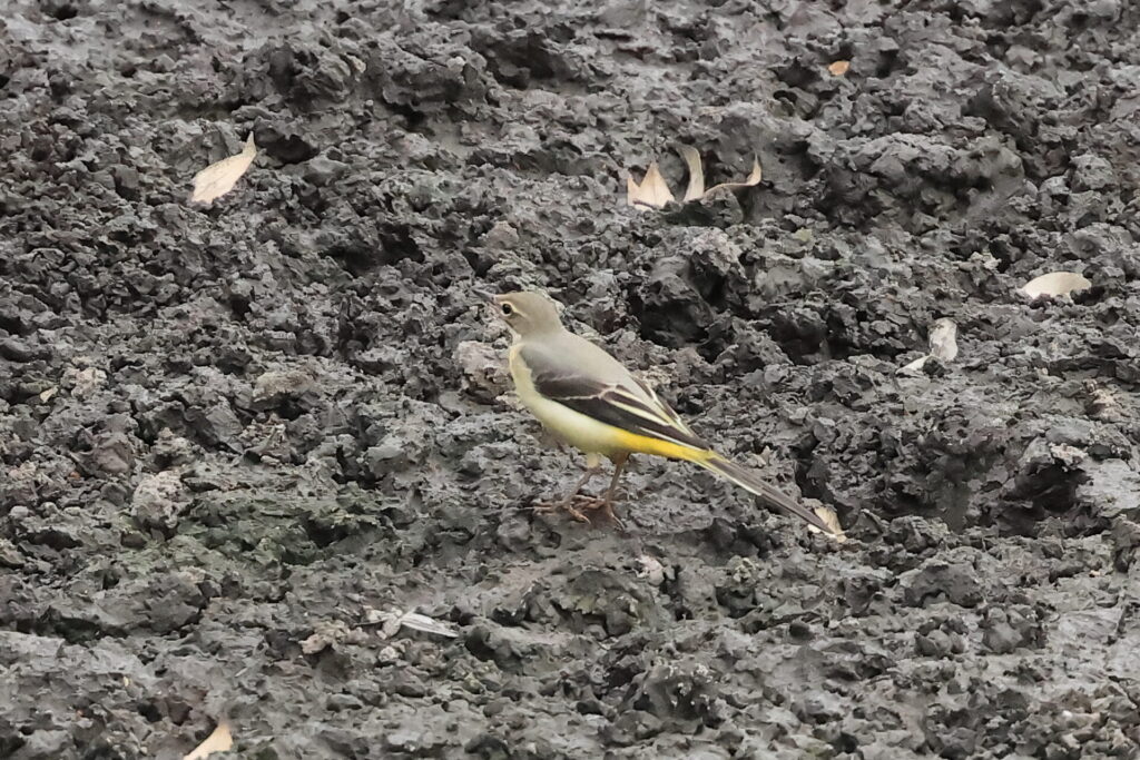 ひょうたん池まで来ると、なんと干上がって水がありません。ここはマガモ専用の越冬池でしたが今年は残念ですね。諦めていると、お尻の黄色い小鳥が池底を小走りしています。落ち着きのないこと。なんとキセキレイが2羽です。これも思わぬ出会いでした。やっとこさスコープにいれました。