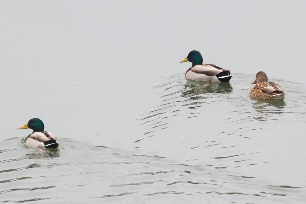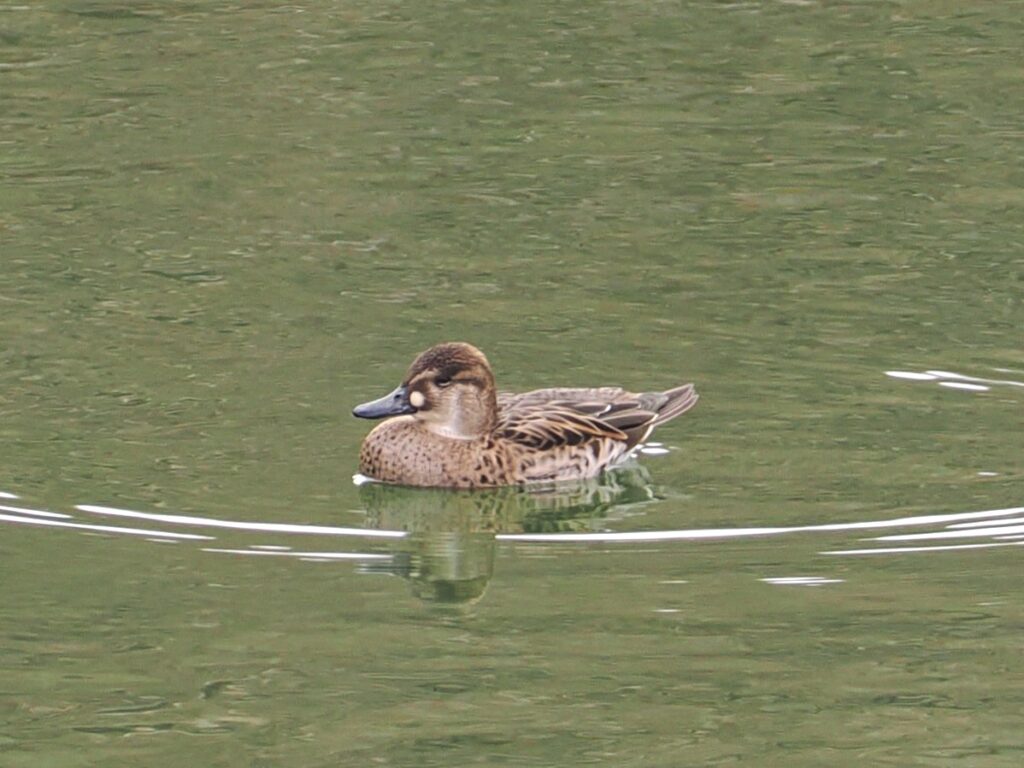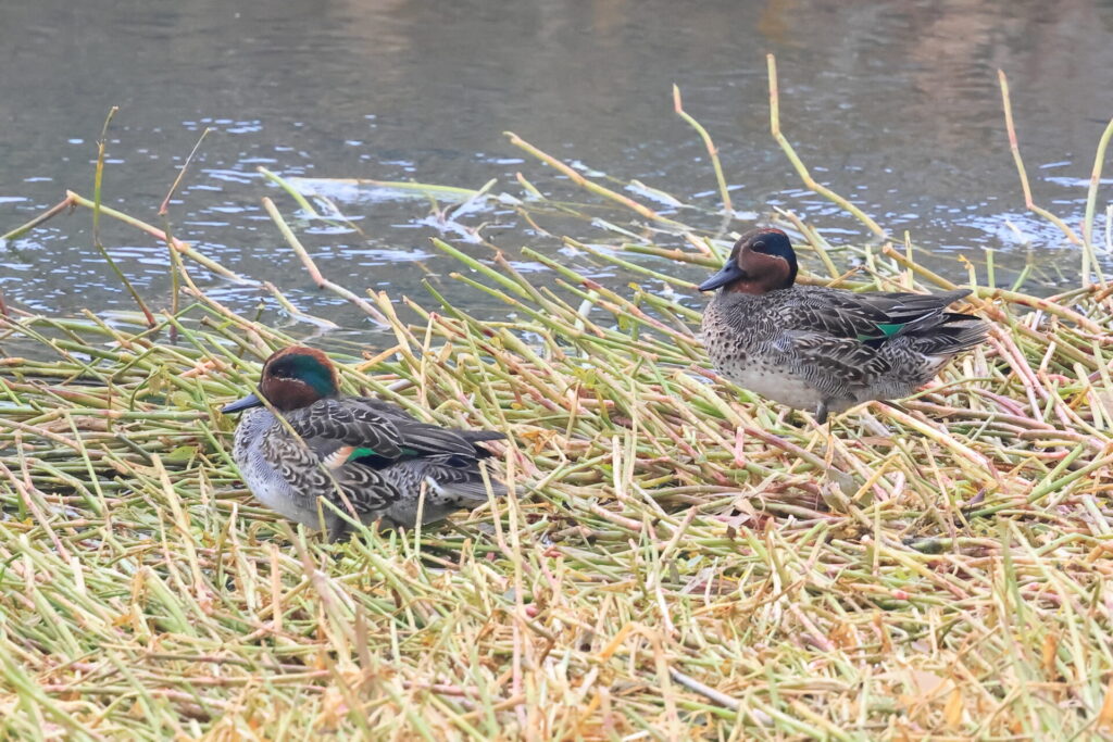 今回のもう一つのポイントは「古間木の池」です。流山市最大の調整池で、マガモの越冬地。年によりますが100羽~200羽ほどが集まります。今年は100羽くらいが越冬していますが、見られたのは50羽ほどでした。その中にキンクロハジロ、ホシハジロ、そして流山では珍しいトモエガモのメスが1羽混じっていたのでした。