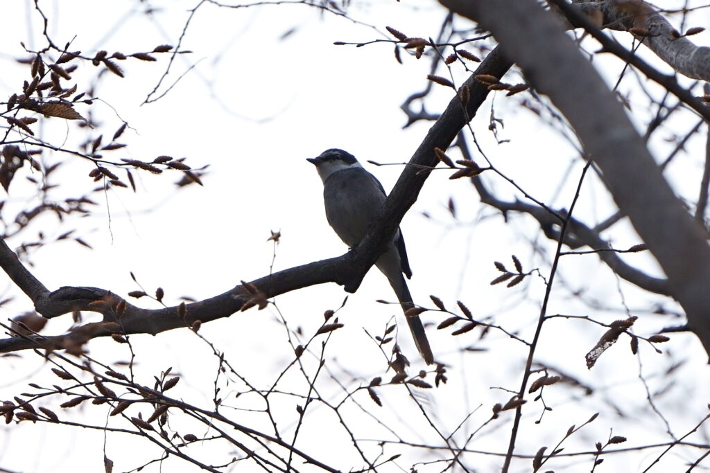 まずは市街地を抜け、大畔の森を目指します。途中の西初石中学校では、シジュウカラ、メジロ、コゲラなどとさっそく出会い、移動中ながら幸先の良いスタートが切れました。あちこちから聞こえてくるシジュウカラの「ツーピ、ツーピ、ツーピ」というよく通るさえずりに、「縄張り宣言かな?それとも恋の季節のアピールかな?」と、早春の訪れを告げる森の風物詩に想像もふくらみます。